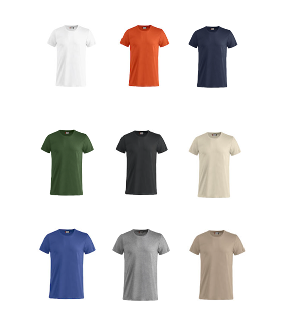 Basic t-shirt i en smalere passform, bånd i nakke, elastan i halsribb og forsterkede sømmer på skuldre.