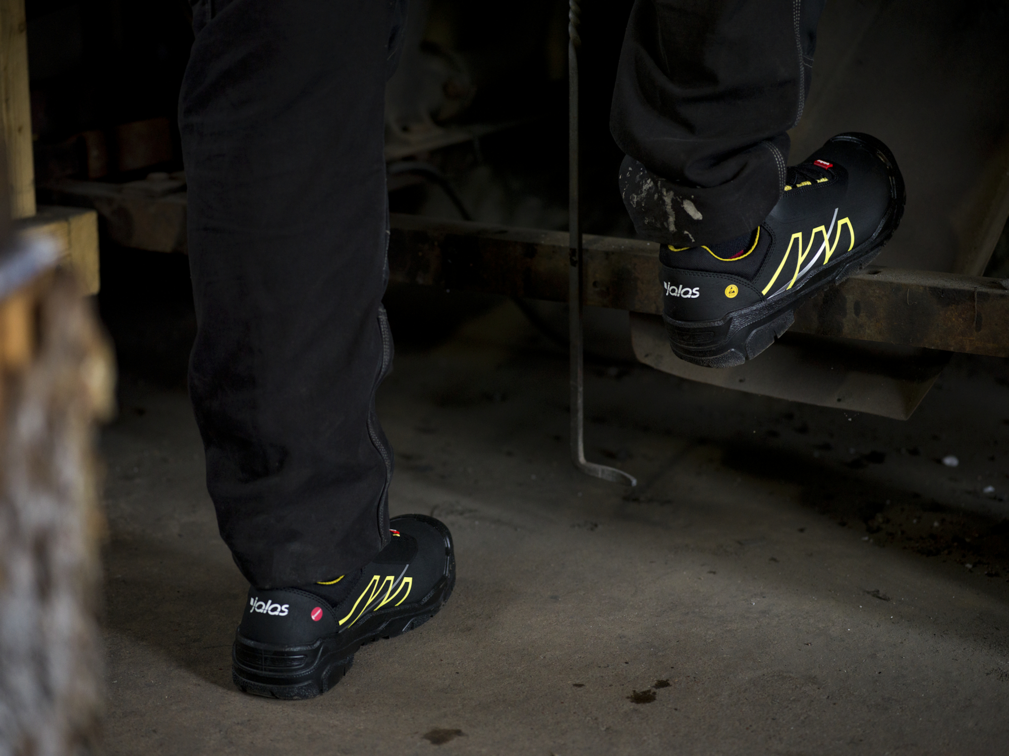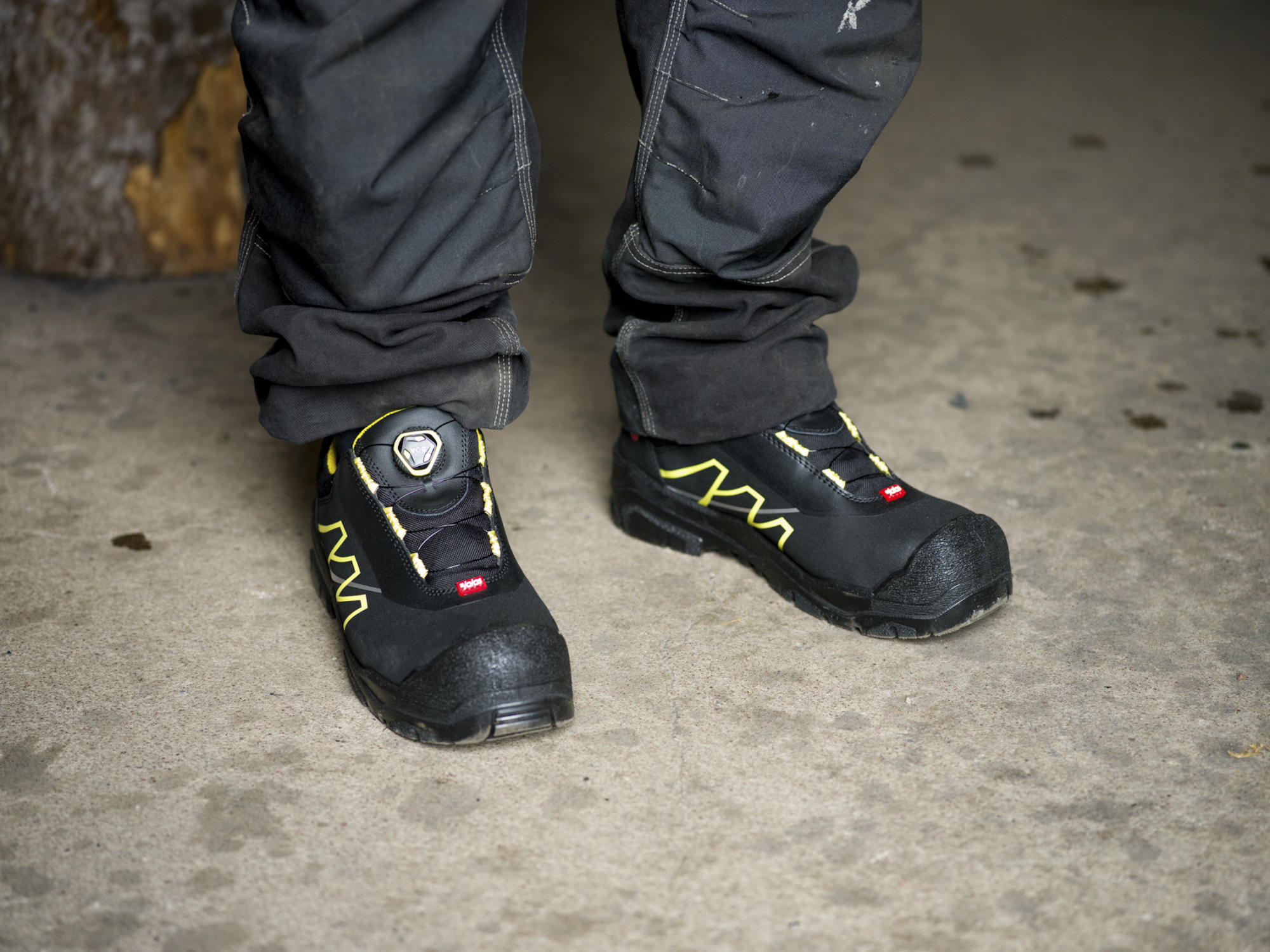 Lav sko med ekstra bredde. Utmerket beskyttelse i barske miljøer. Skoen har BOA® Fit System for perfekt passform og er lett å ta av og på. Spikertrampbeskyttelse i stål og tåhette i aluminium. PU-mellomsåle, yttersåle i gummi og overmateriale i PU-belagt skinn.