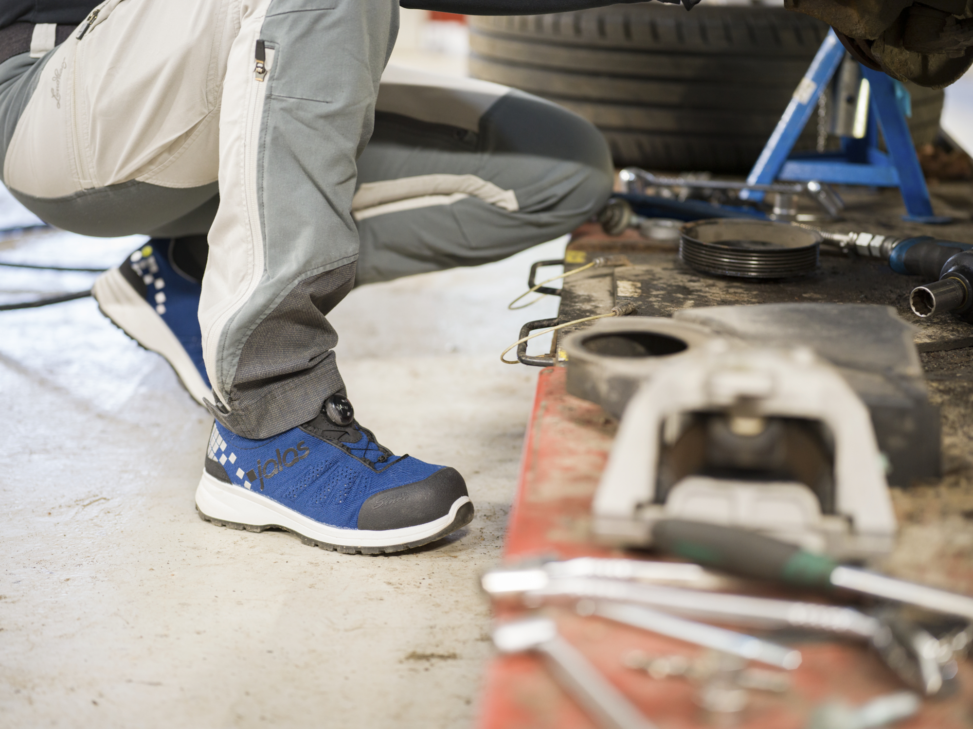 En komfortabel vernesko med fargerik sportsinspirert design, BOA® Fit System og kvalitetsbeskyttelse. Overdelen i strikket funksjonstekstil og polstret memory foam holder føttene trygge, svale og komfortable under lange arbeidsdager. Den oljebestandige RPU-yttersålen gir utmerket grep, og JALAS® tåhette i aluminium, spikertrampbeskyttelse i plasmabehandlet tekstil og doble støtdempingssoner i PORON® XRD® holder føttene trygge under arbeidet.