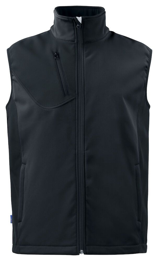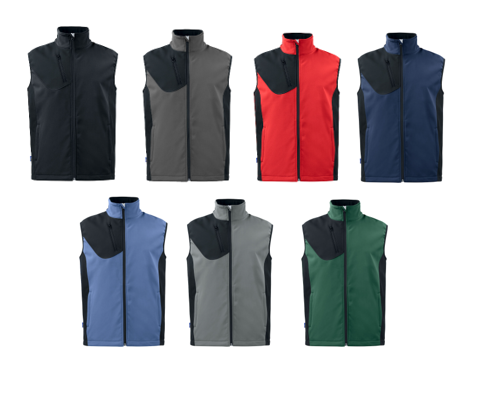 Softshellvest med pusteevne. To sidelommer med glidelås. Påsydd brystlomme med glidelås. To innerlommer. Innvendig vindklaff med beskyttelse til haken. Justerbar midje.