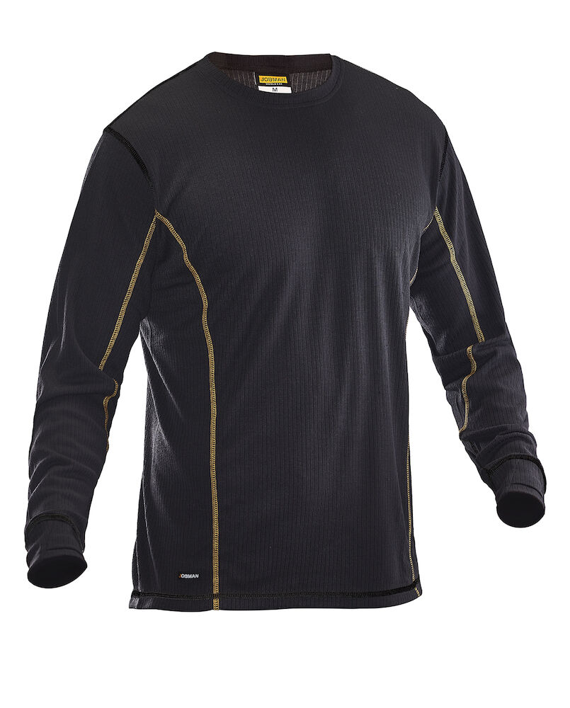 Undertrøye med rund hals i ribbestrikket, resirkulert polyester. Trøyen har forlenget rygg, tommelhull på mansjetter og flatlocksømmer i kontrastfarge. Finnes som longs, modell 2570.